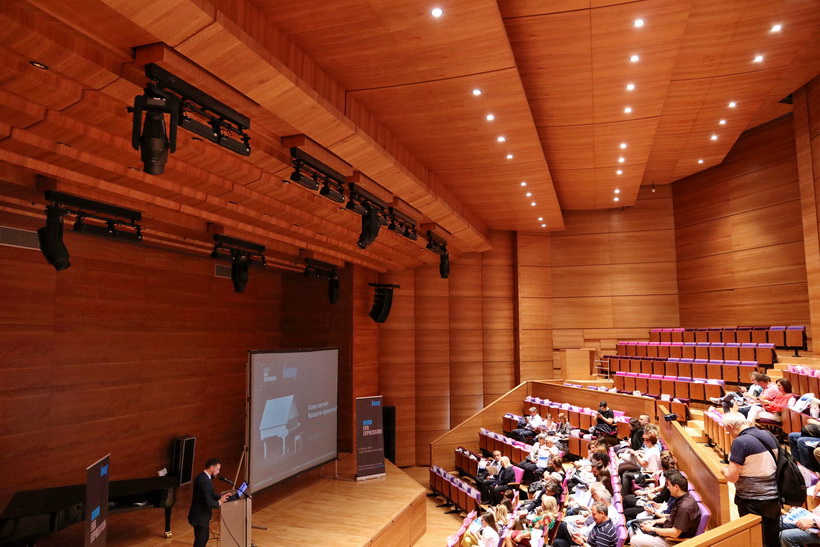 Подробни информации за самиот објект и неговите просторни содржини изнесе српскиот архитект Зоран Гаковиќ, претставник од австриската компанија Штрабаг АГ – главен изведувач на објектот. Тој го раскажа текот на изведбата на Македонската Филхармонија и сите пропратни предизвици. Особено внимание предизвика обраќањето на Александар Докмановиќ од фирмата Mezosystem, кој се осврна на изведбата на ентериерот во големата и малата сала на Македонската Филхармонија.