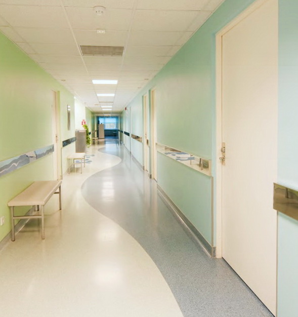 Болниците се фрекфентни места, низ кои се движат и луѓе, а и опрема. Одговорноста на квалитетниот проект е и во потребата естетиката и функцијата на болницата да биде трајна. Површините во болницата треба да ги издржат ударите од подвижните болнички кревети, од апаратите кои се пренесуваат низ ходниците и лесните но бројни слаби удари од нормалното користење на болничките соби од пациентите и персоналот на болниците.