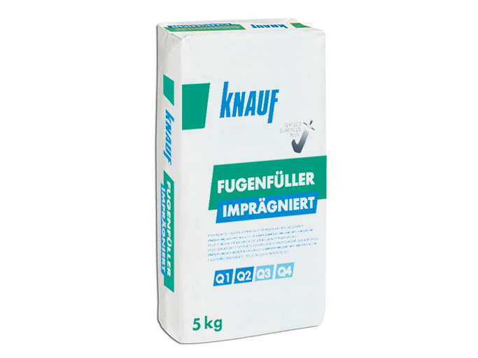 За фугирање на стандардни, имрегнирани плочи, се користи импрегнираниот Fugenfüller. Тоа е гипсена маса за исполна произведена за системска употреба со Кнауф импрегнираните плочи: