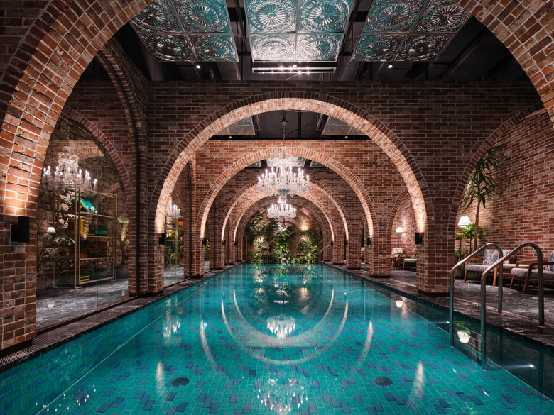 При спецификацијата на градежните материјали за хотелот, беше посветено големо внимание за да се обезбеди слобода за креирање на заоблените елементи на дизајнот со адхезив за тули, а истовремено да се гарантира високо ниво на водоотпорност во влажниот простор. Knauf AQUAPANEL® Cement Board Indoor на крајот беше избран како совршено решение за внатрешните ѕидови на базените и спа-центарот во подрумот, вклучително и полуотворените простори.
