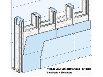 Системот DIVA, W145.мк, за висока звучна заштита е комплексен систем ој вклучува посебни Кнауф MW-профили и повеќе слоеви на Кнауф плочи со зголемена маса. Во пракса, согласно елаборатите за звучна заштита на објектите, системот може да вклучи и комбинирани типови на плочи, за постигнување на високи вредности на звучна изолација по различни фрелфенции на звук. За повеќе информации, исконтактирајте го нашиот технички сервис.